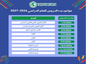 مواعيد بدء الدروس للعام الدراسي 2026-2027