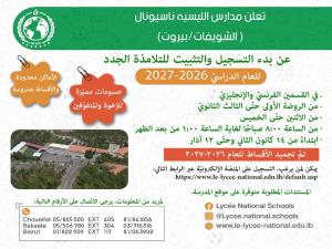 بدء التسجيل والتثبيت للجدد 2026-2027 لمدرستي الشويفات وبيروت