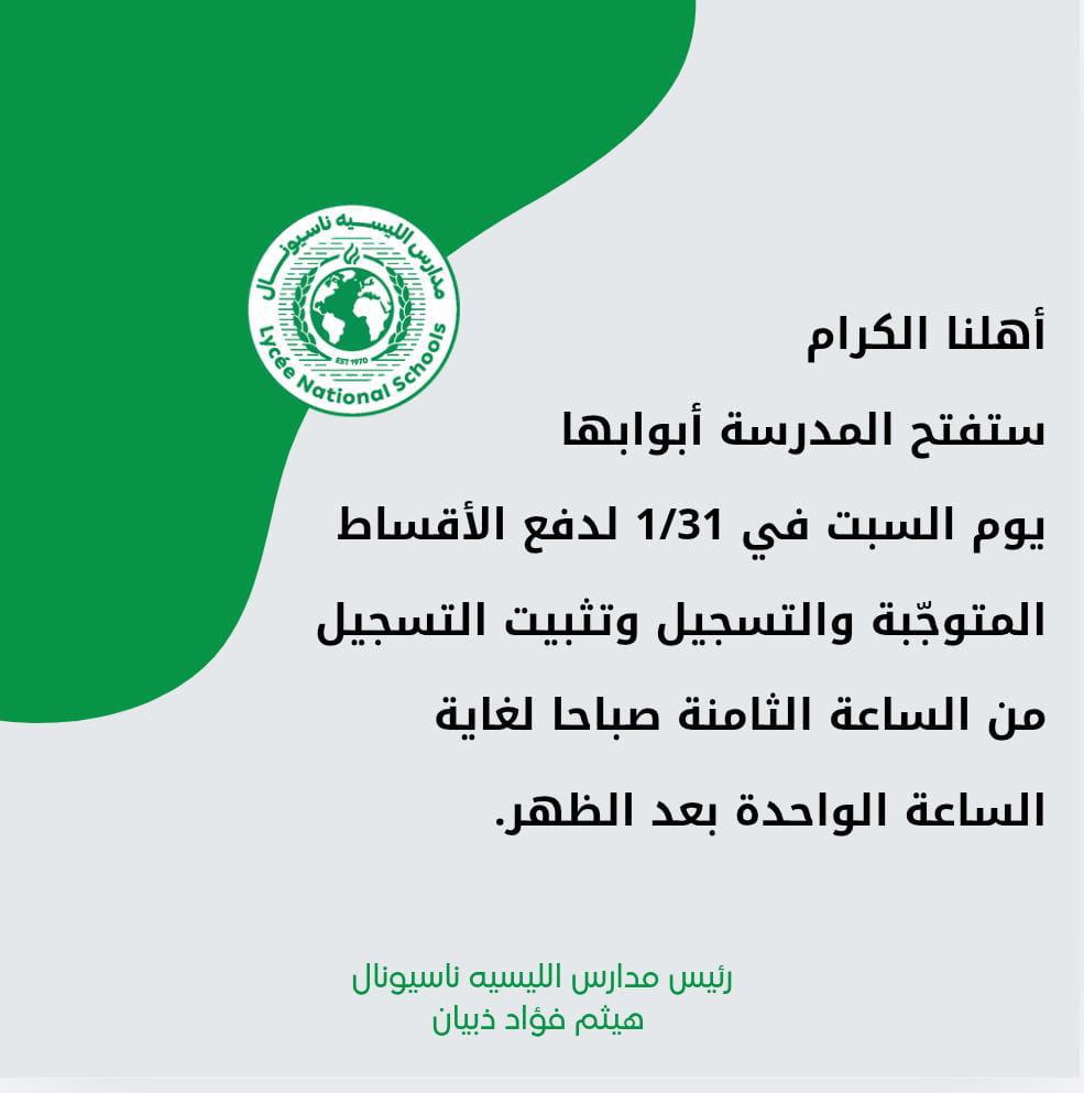 بدء التسجيل والتثبيت للجدد 2026-2027 لمدرستي الشويفات وبيروت