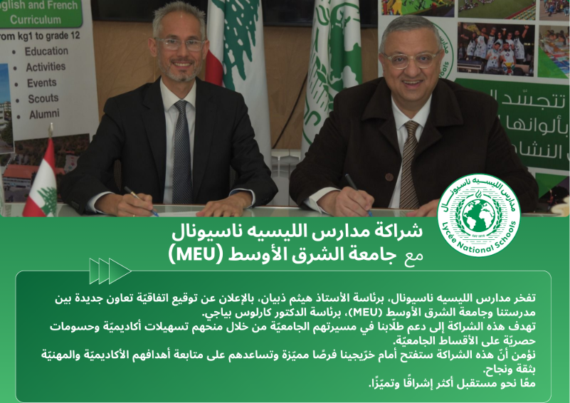شراكة مدارس الليسيه ناسيونال مع جامعة الشرق الأوسط (MEU)