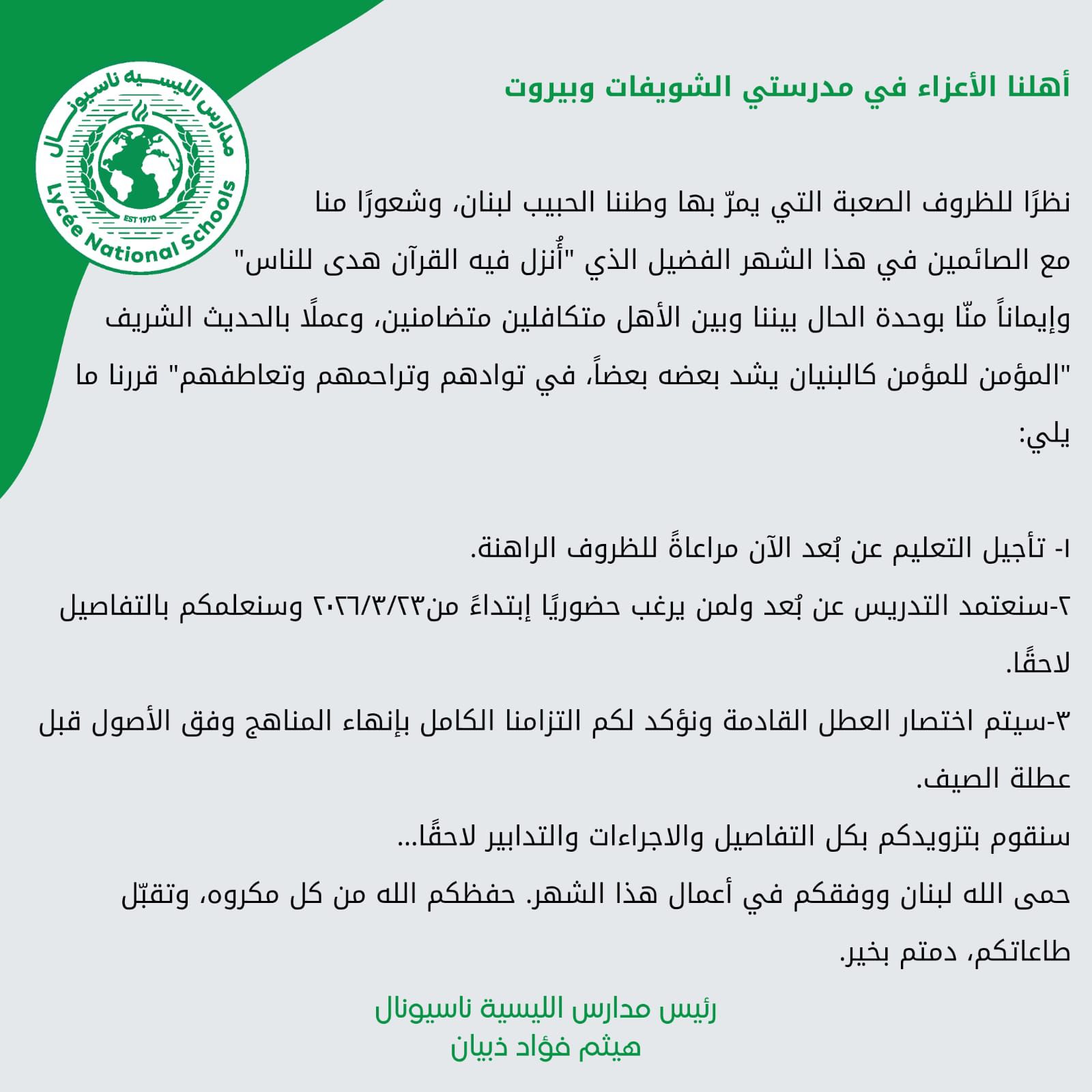 بدء التسجيل والتثبيت للجدد 2026-2027 لمدرستي الشويفات وبيروت